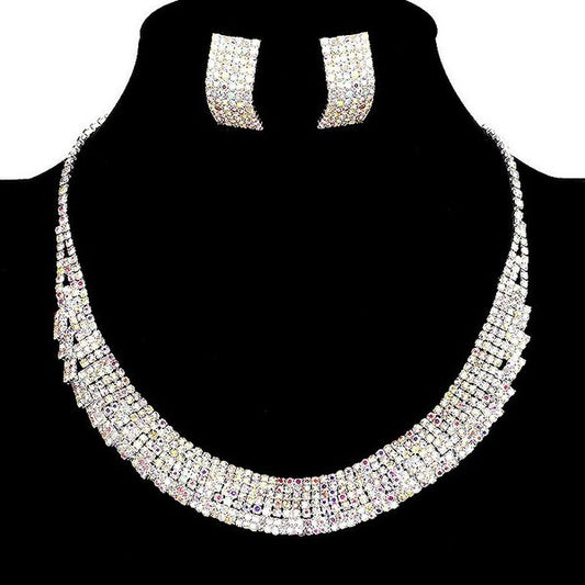 Bold Dazzling Bar Wind Rhinestone Necklace Set