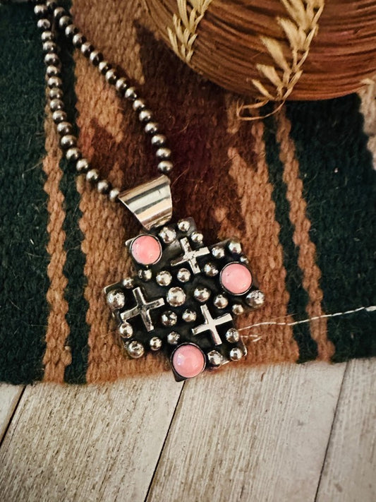 Handcrafted Queen Pink Conch & Sterling Silver Cro