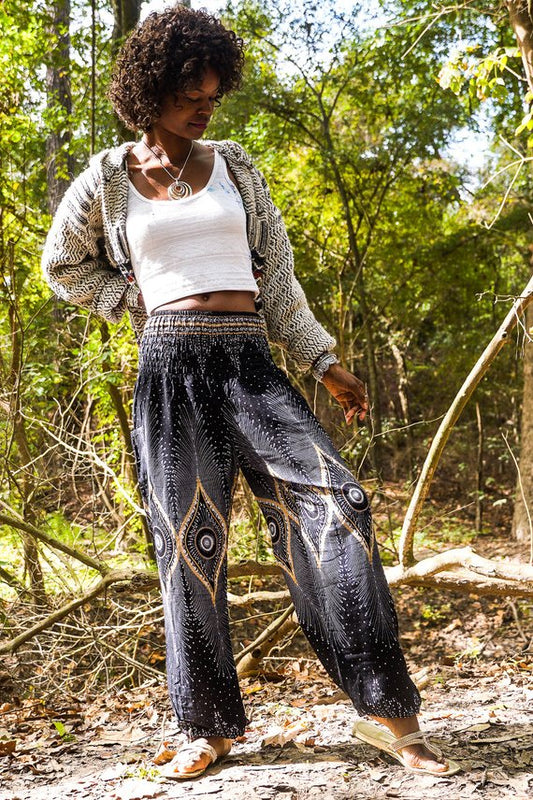Umgee Palm Leaf Print Wide Leg Culotte Pants
