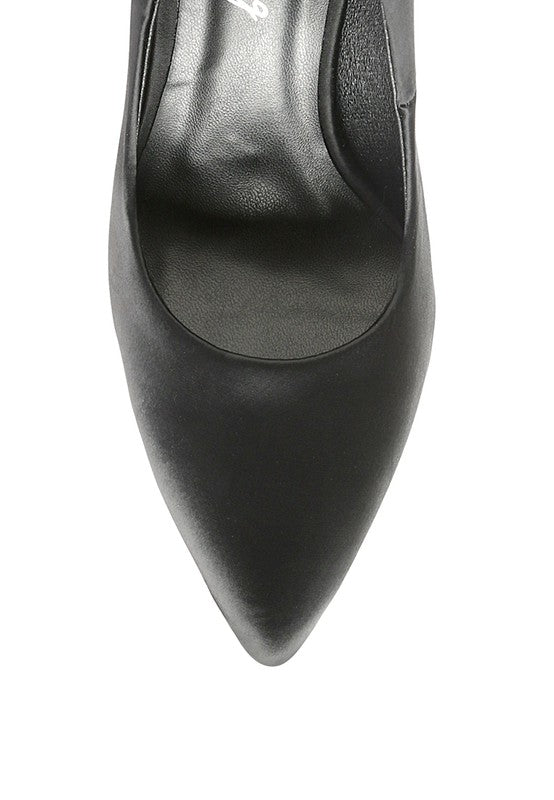 Very classic dress shoe for formal occasions and every time you want it special Satin pumps from London Rag. Beautiful and sharp these pointed stilettos are must in every girl's wardrobe.