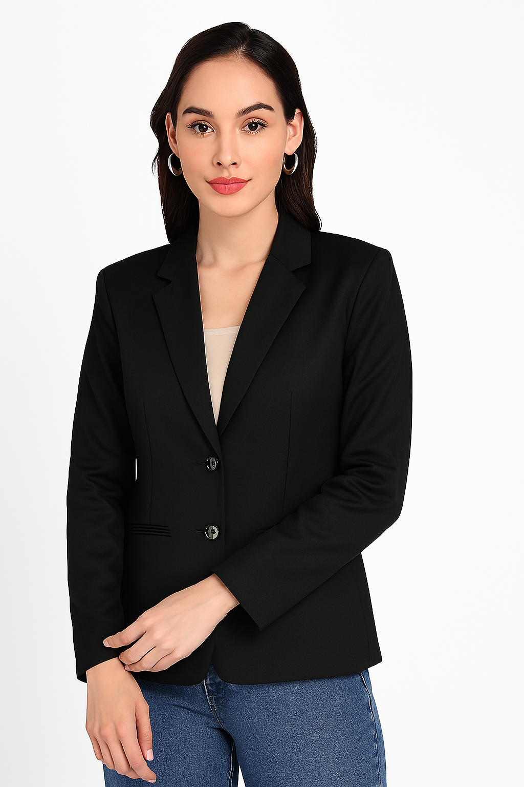 Black Blazer – Formal Notched Lapel, Two-Button Closure